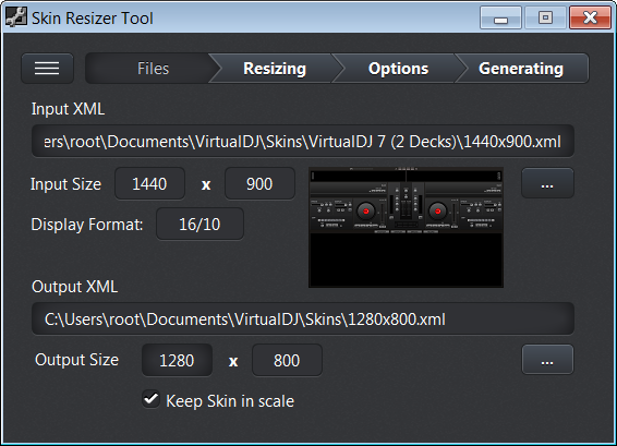 Skin Resizer Tool will resize and adapt any VirtualDJ Skin to your screen in only 3 steps. Your favorite Skin will fully adapt to your screen.